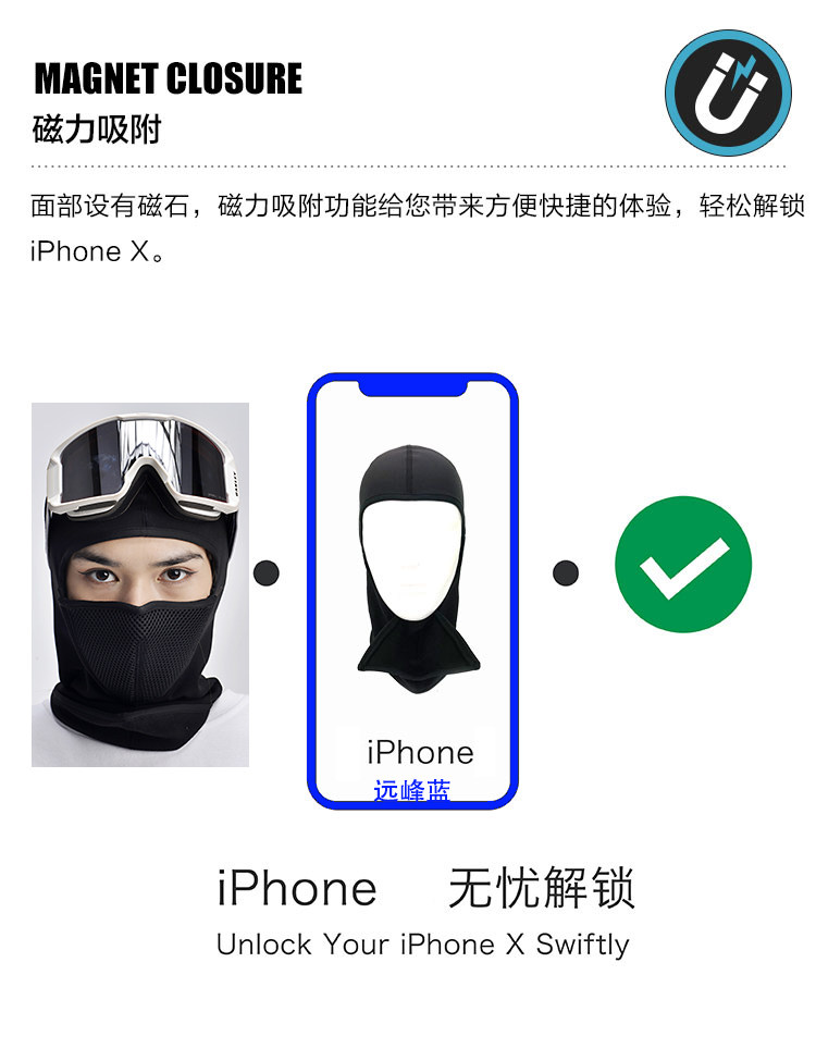 XXXsnow新款 磁吸滑雪头套护脸磁铁护脸防风保暖单板双板快拆面罩