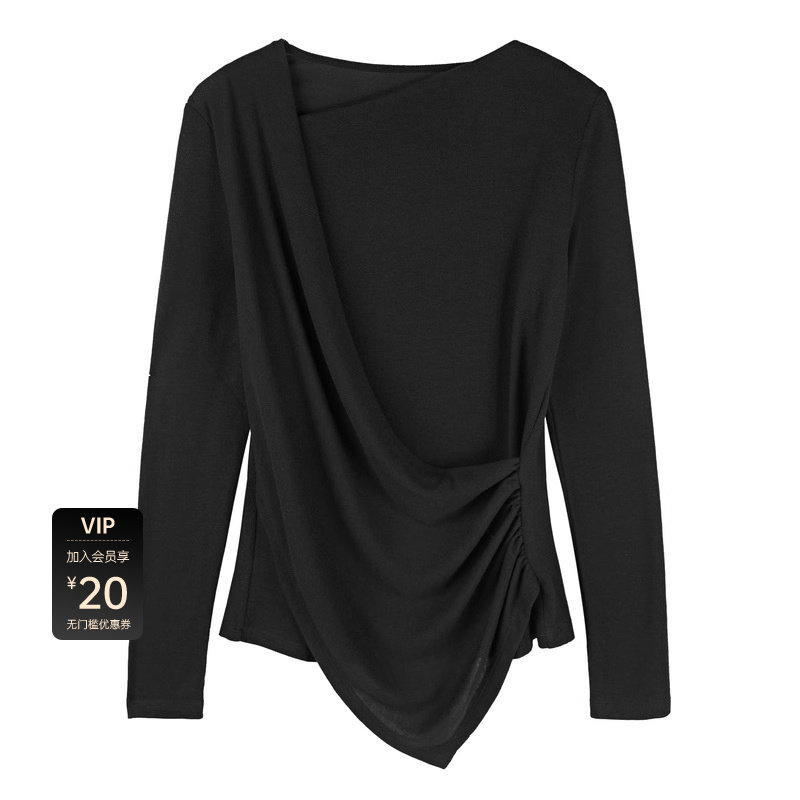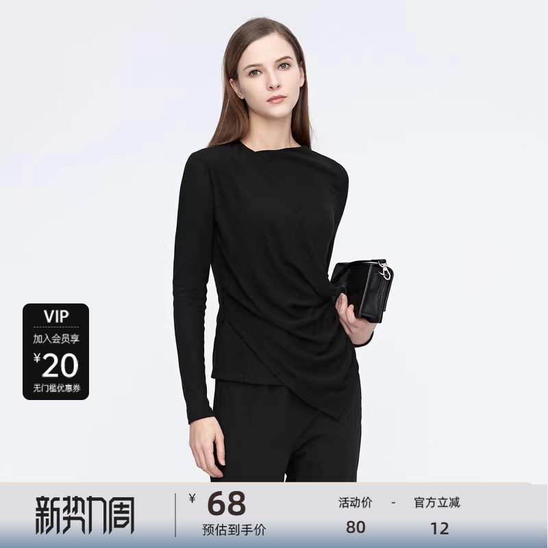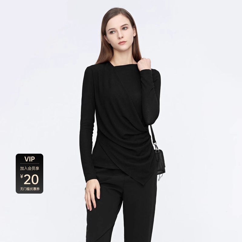 sdeer圣迪奥秋不规则领堆叠拼接不规则T恤S21180217 秒杀