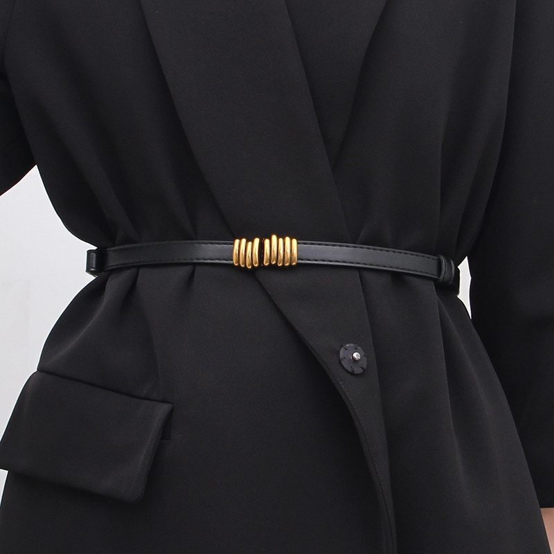 时髦百搭腰带女配裙子外套气质金属扣哑光黑色小皮带细毛衣收腰