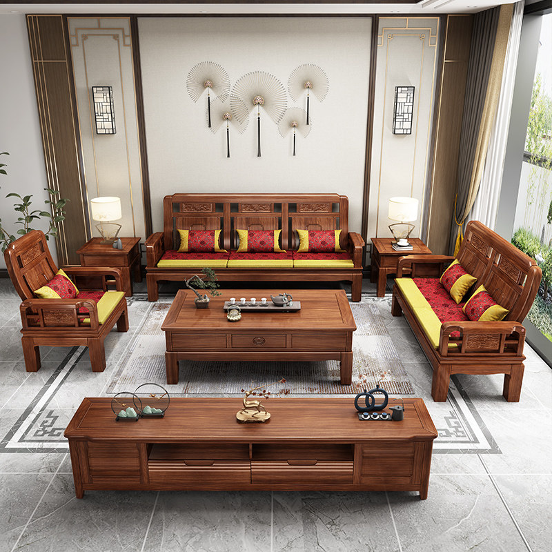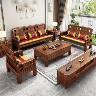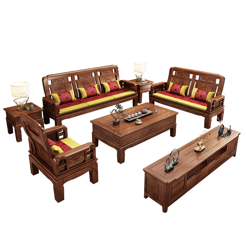 雕花古典中式 实木沙发小户型冬夏两用明清仿古客厅123仿红木家具