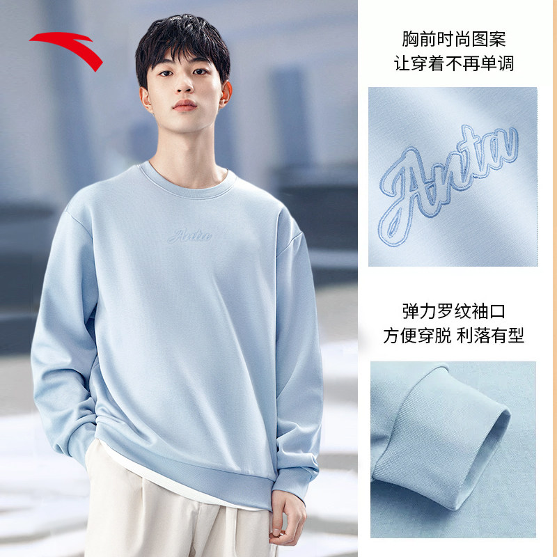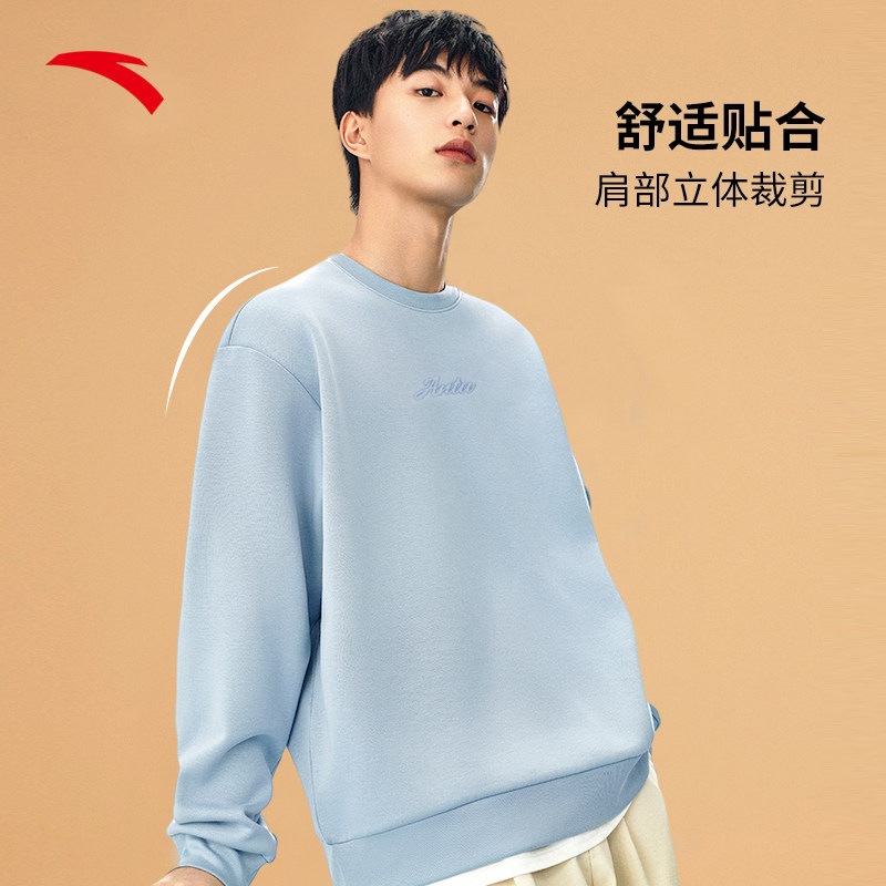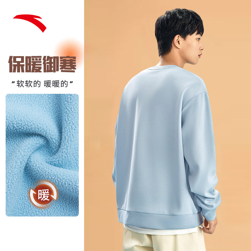 加绒长袖 安踏易打理卫衣 百搭圆领套头衫 冬季 上衣 针织运动服男士