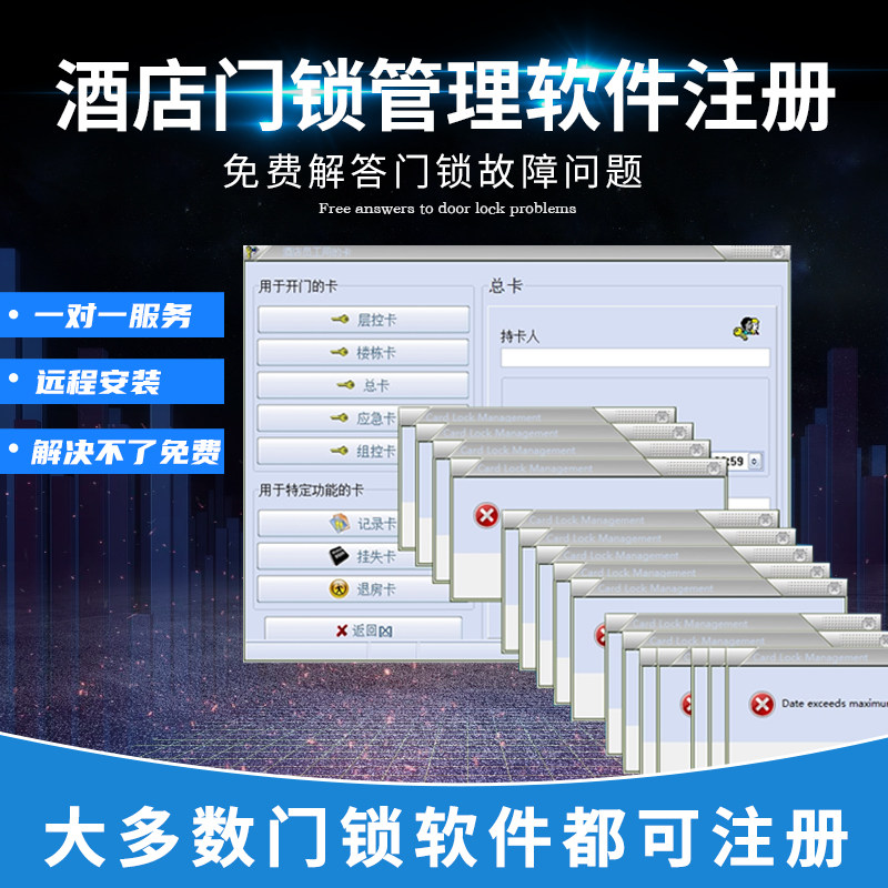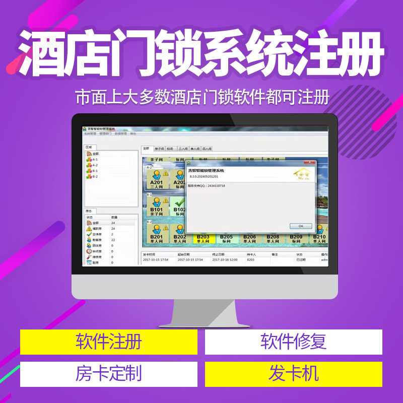 门锁软件注册门卡房卡系统酒店宾馆换电脑安装 升迁远程升级 注册码