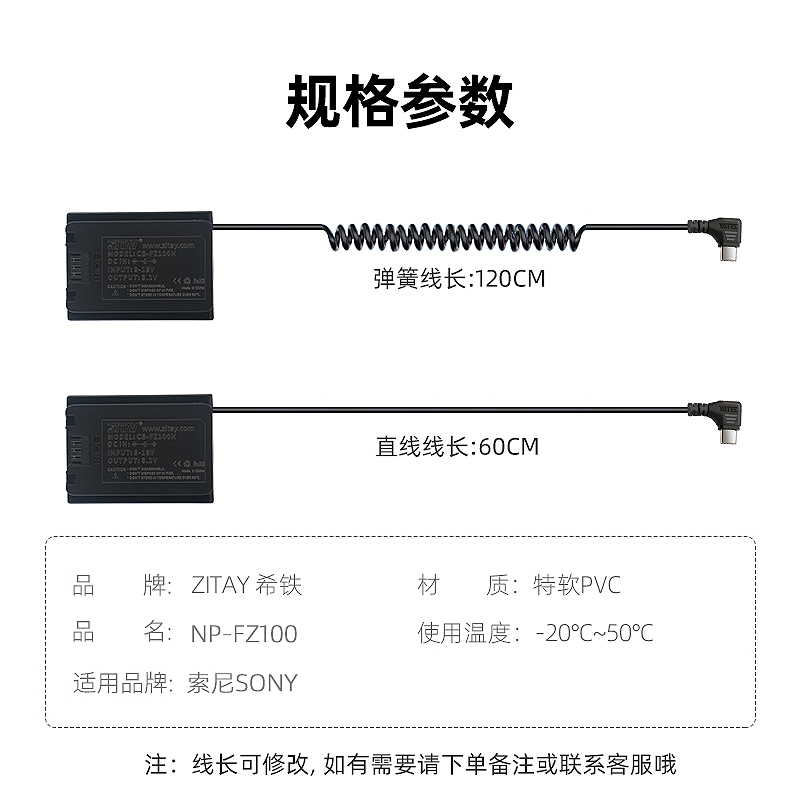 A7M3 a9模拟供电源线ZVE1 C转NP A7M4 a7r4 fx3 A7C2 A7s3 FZ100假电池适用sony索尼A7R5 Type ZITAY希铁USB