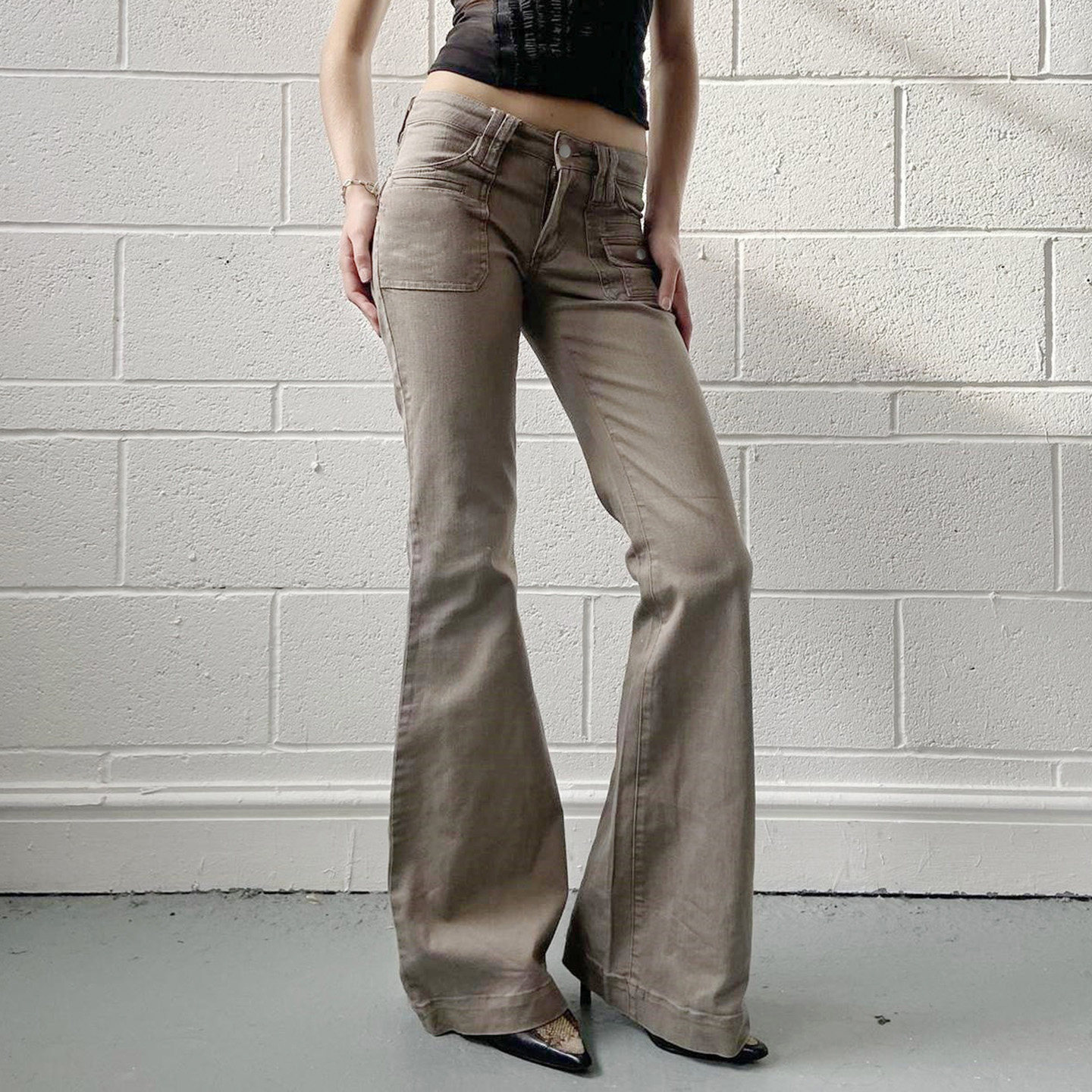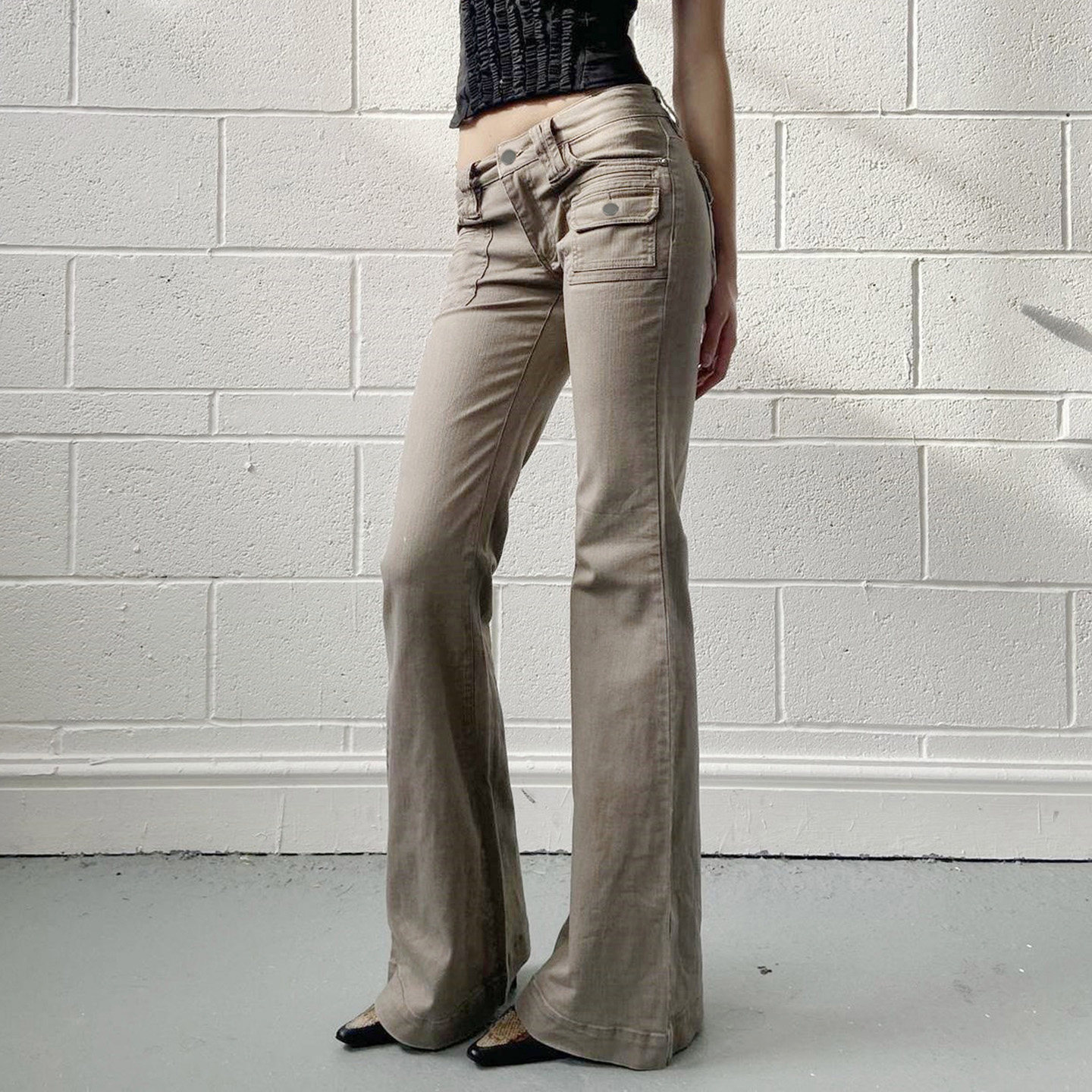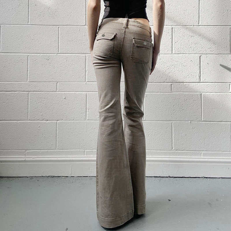 女复古微喇小口袋长裤 WEEKEEP 显瘦牛仔裤 辣妹卡其色高腰修身 美式