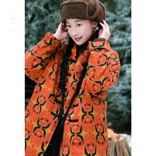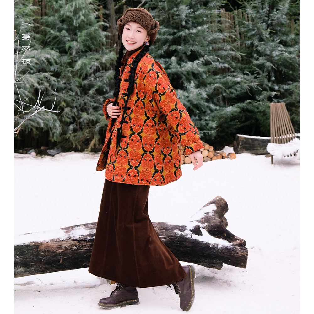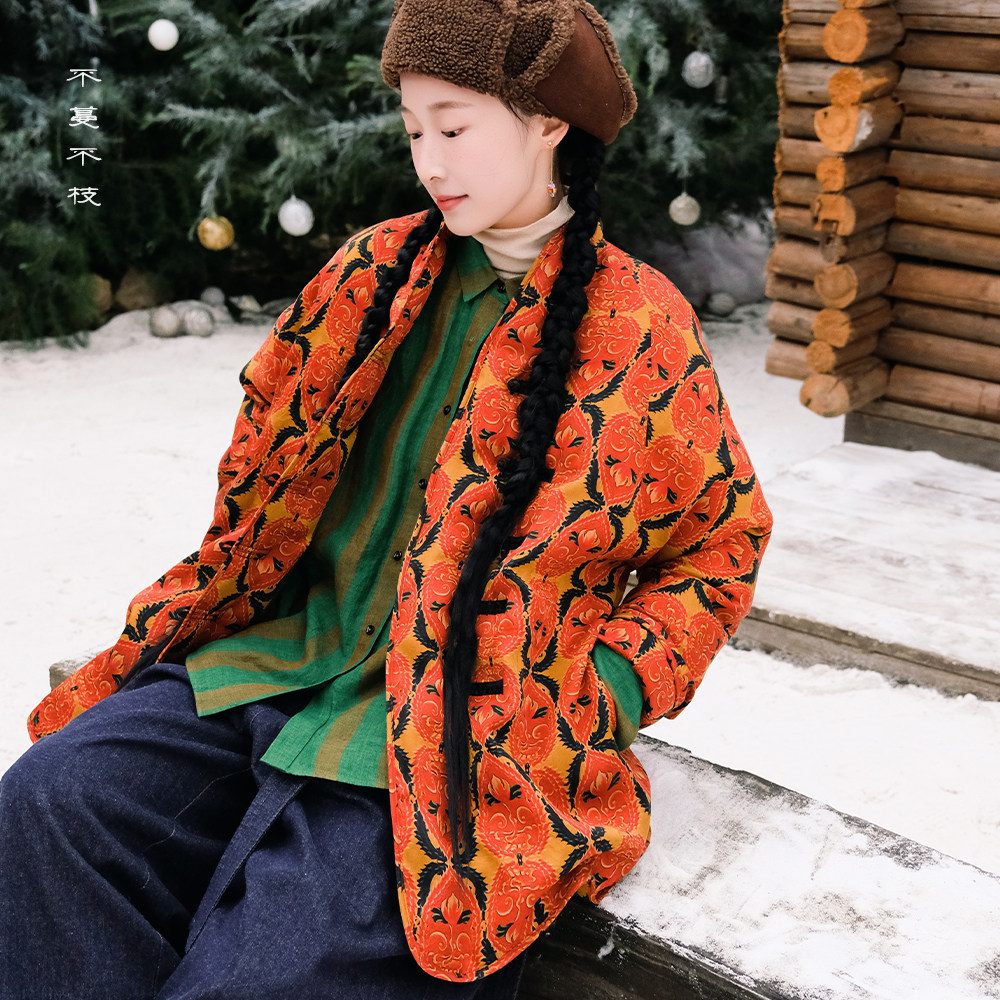 香云纱羽绒衣95白鸭绒加厚保暖盘扣真丝印花冬季 不蔓不枝 朱颜