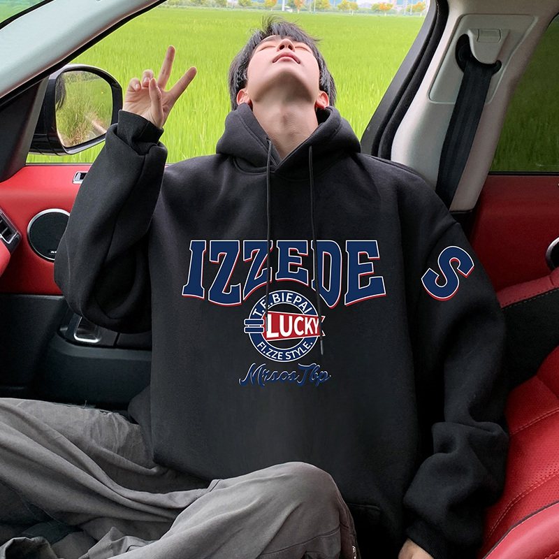 男生上衣青少年加厚男装 秋冬美式 新款 冬季 外套男 潮牌加绒卫衣男士