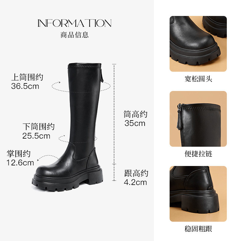 大东女靴长筒靴2025冬季 优雅骑士靴高筒靴粗跟厚底增高女长靴 新款