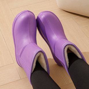 耐磨时尚 保暖中筒厨房防水防油防滑棉鞋 加绒加厚冬季 雪地靴女雨鞋