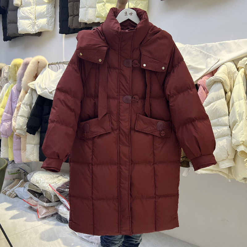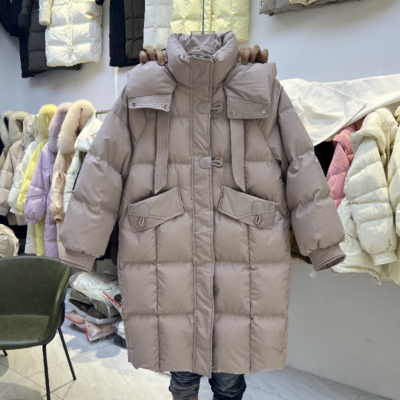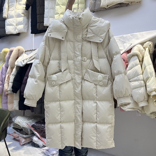 大码 高端鹅绒羽绒服女中长过膝款 加厚宽松连帽三防外套潮 新款 冬季