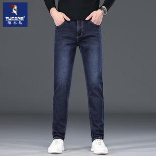 加绒加厚款 直筒弹力商务休闲裤 牛仔裤 修身 子 男士 啄木鸟2025秋冬季