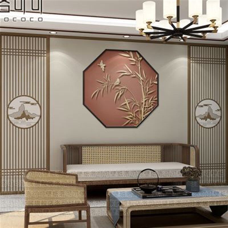新中式 电视背景墙壁纸客厅壁布沙发影视墙纸卧室壁画花鸟墙布2022