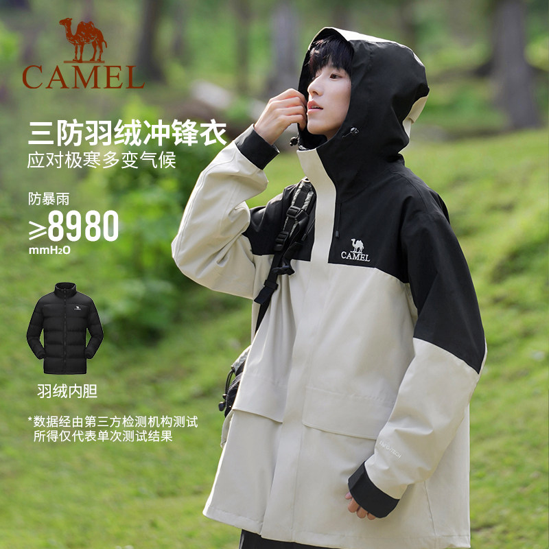骆驼户外三合一男女冲锋衣防风防水登山服旅游外套 胡可推荐