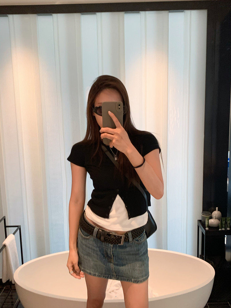 1992 小众显瘦羊毛针织短袖 夏季 修身 新款 留下