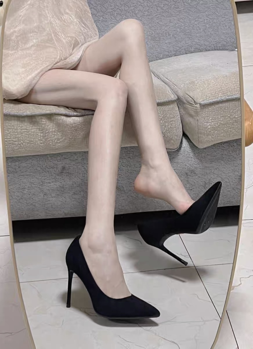 黑色职业细跟尖头浅口网红性感气质学生礼仪鞋 高跟鞋 女2025年新款
