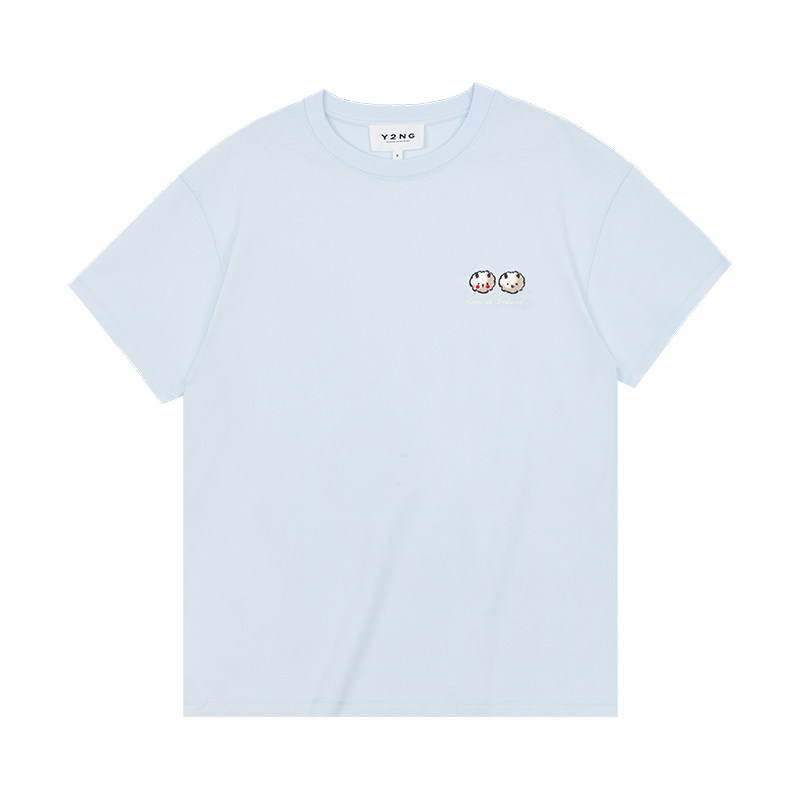 Y2NG创意刺绣双羊logo重磅oversize宽松圆领短袖 T恤男女同款