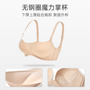 圆圆胸内衣女小胸聚拢外扩型漫画胸无痕半杯显大无肩带防滑文胸罩