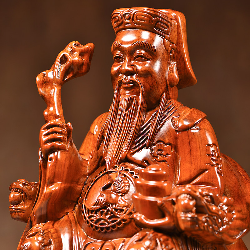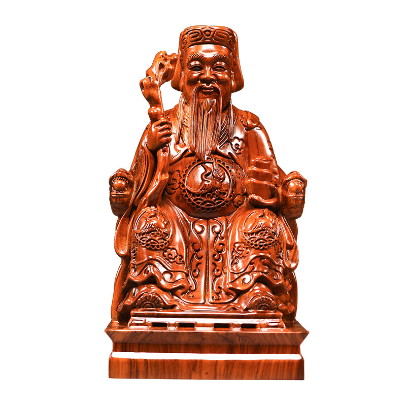 花梨实木土地公土地婆木雕福德正神家居供奉土地爷摆件镇宅助运