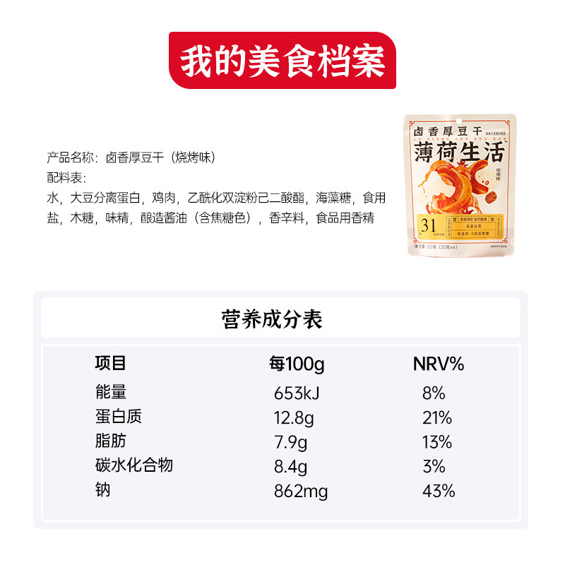 麻辣豆腐干似素肉零食20g 薄荷生活卤香豆干老式 袋 任选专区