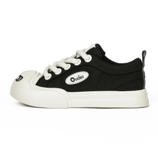 smiler开口笑帆布鞋 Ouder 女厚底增高圆头黑白大头鞋 白鹿同款