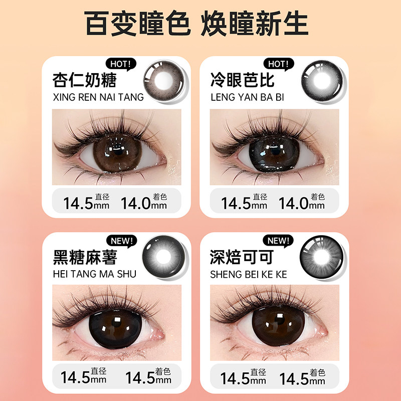 伊娃爱美瞳大眼萌半年抛2片杏仁奶糖棕色大直径隐形眼镜官方正品