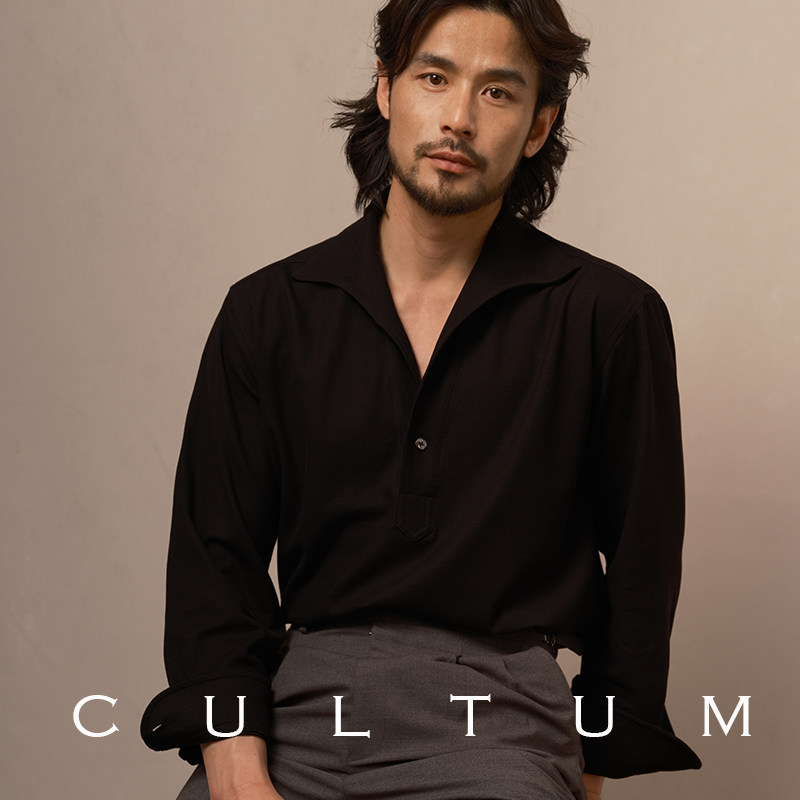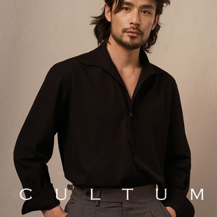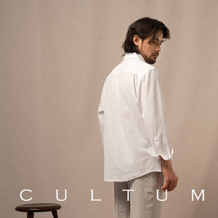 男夏季 衬衫 轻薄纯色休闲复古衬衣 一片领长袖 CULTUM100%珠地棉意式