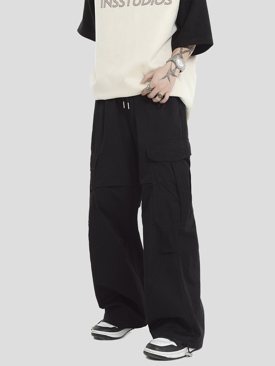 宽松阔腿休闲裤 NOPASS 裤 抓褶多口袋工装 子 国潮牌情侣原创美式