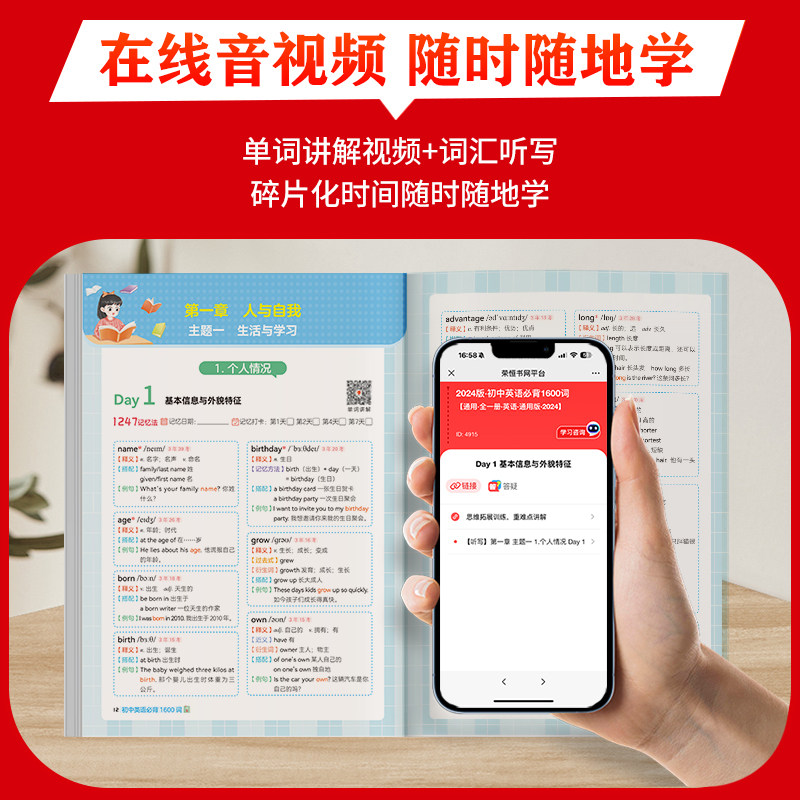 初中英语必背1600词中考英语必备词汇七八九年级英文高频单词荣恒