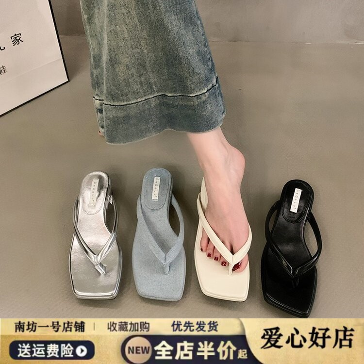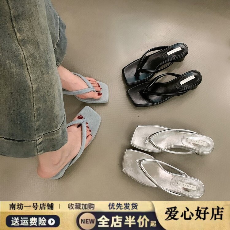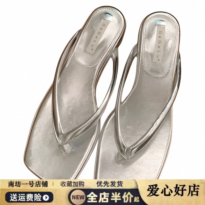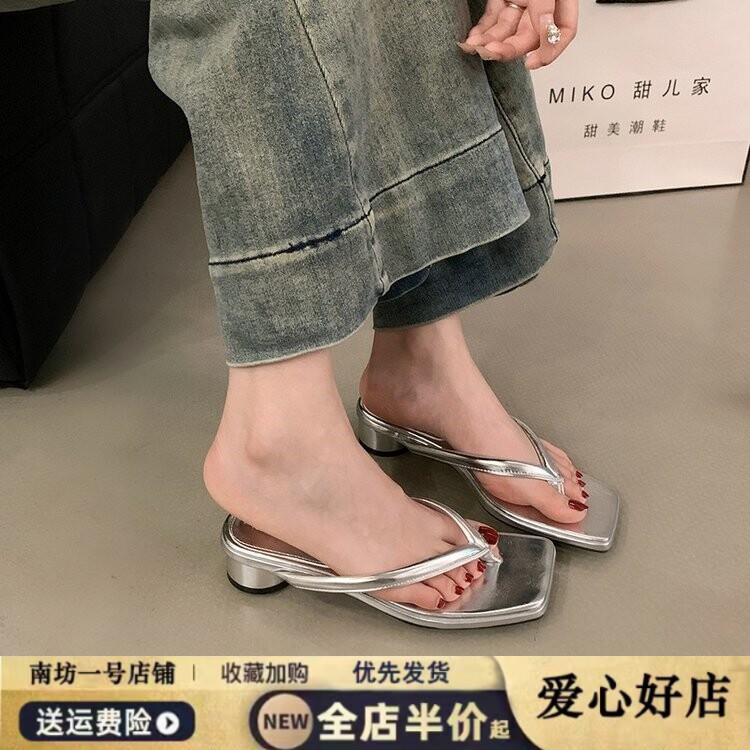 拖鞋 法式 外穿高级感夹趾凉拖配裙子银鞋 夏季 粗跟人字拖女2026新款