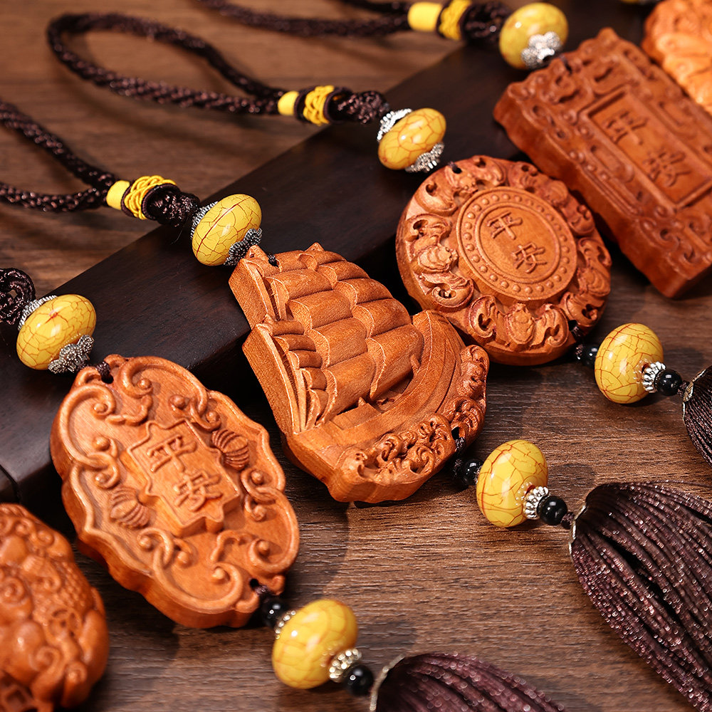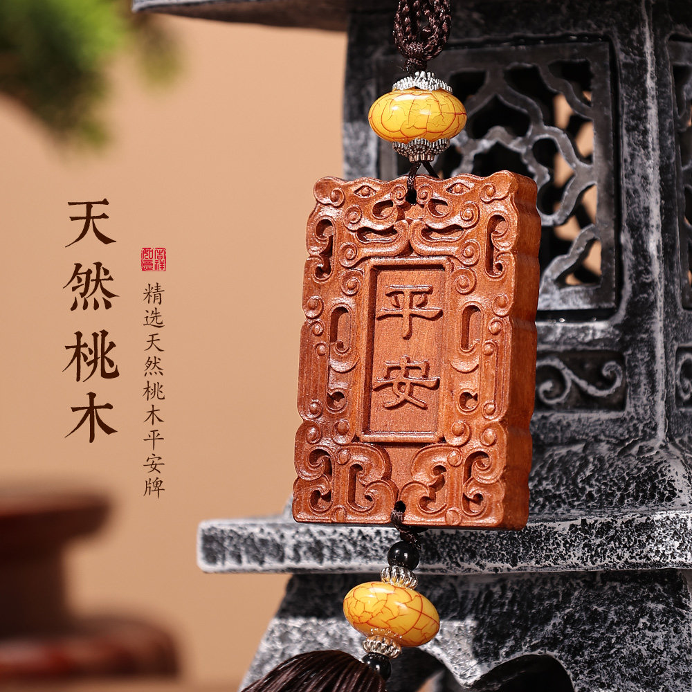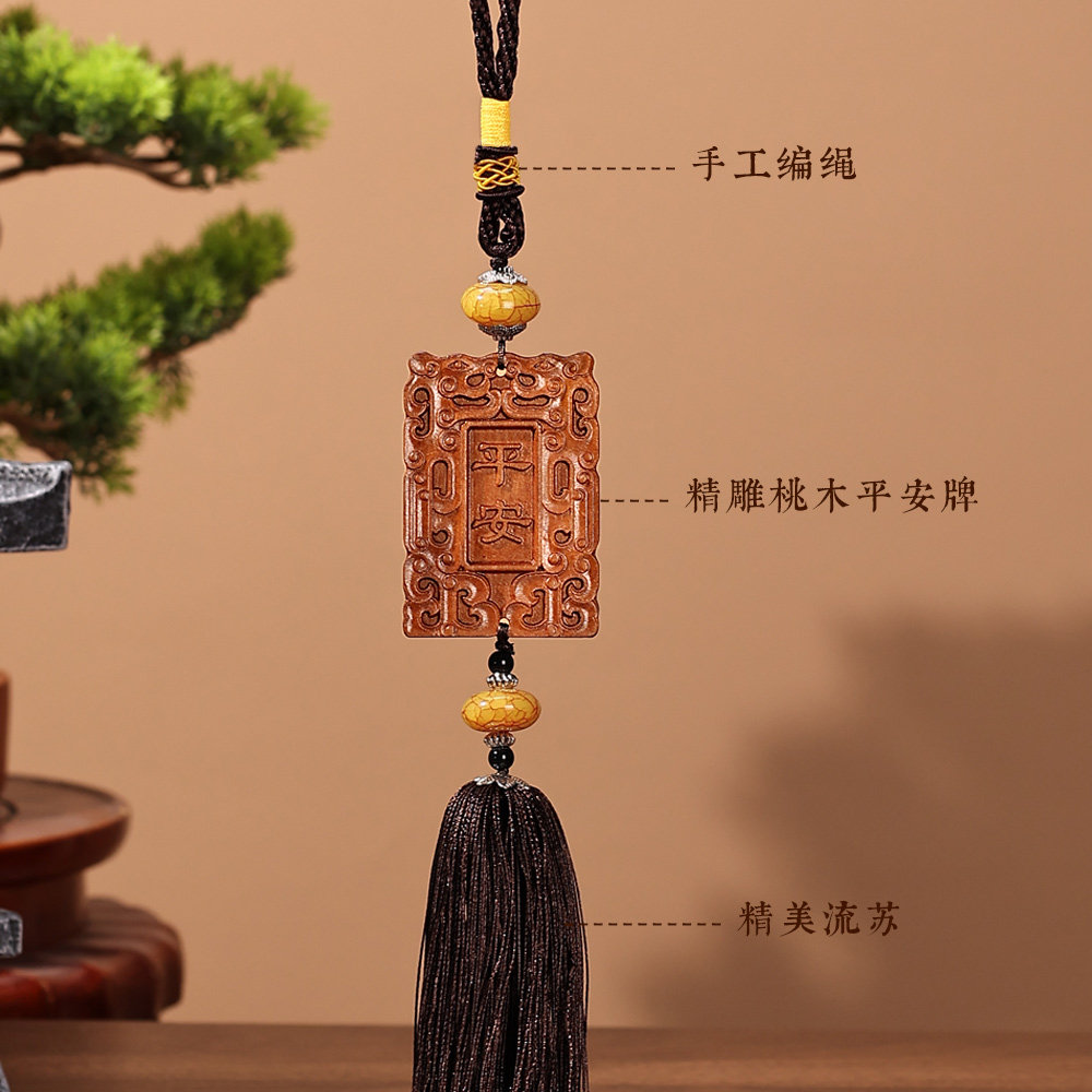 天然纯桃木平安牌车挂中国结出入平安挂件中国风饰品汽车高级内饰