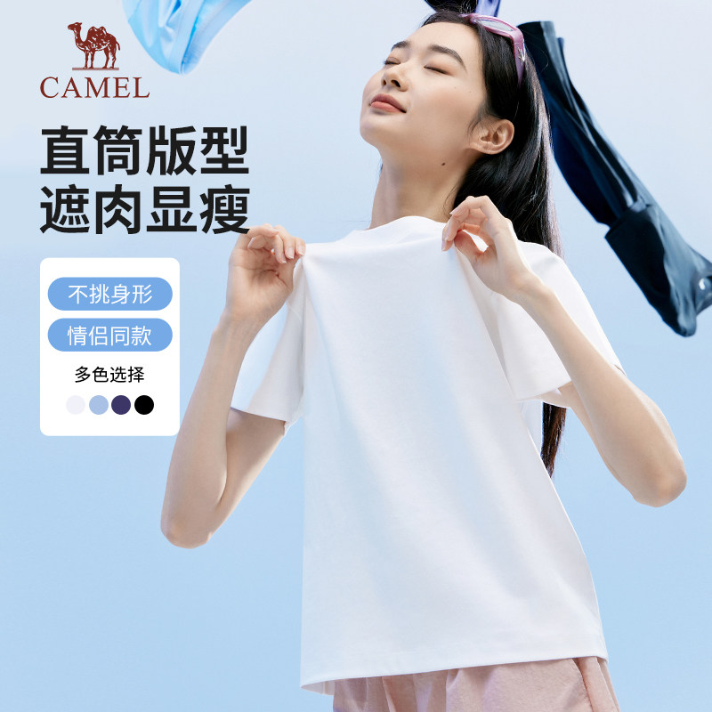 夏季 t恤2025新款 冰感速干正肩透气休闲运动T恤女 纯棉短袖 骆驼女装