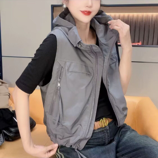 冲锋衣韩版 外套新款 爆款 无袖 宽松显瘦潮流连帽马甲女 短款 2025秋季
