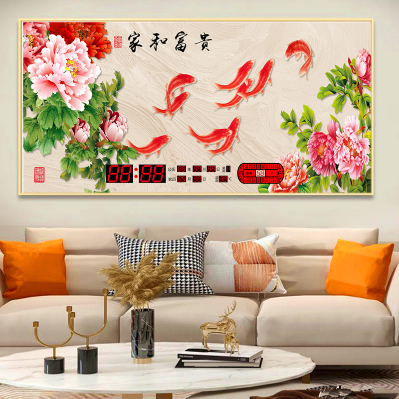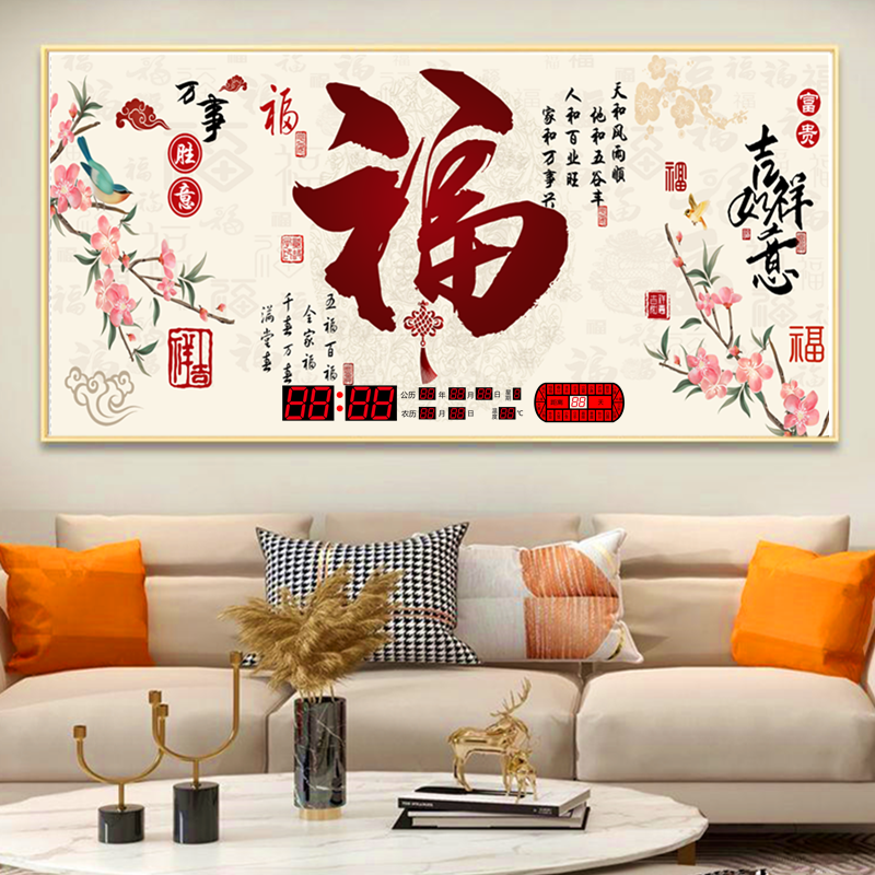 饰画挂钟钟表日历卫星授时新款 万年历北极星数码 电子钟客厅壁挂装