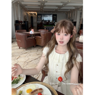 新款 杏色蕾丝边连衣裙蓝色碎花中长裙女夏季 爱乐诗集 DOLL原创