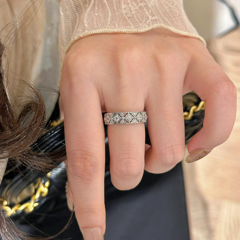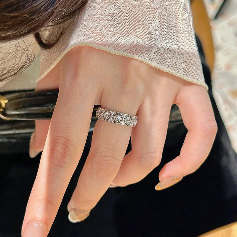 S925银菱格锆石戒指女轻奢高级感精致百搭指环2026新款 食指戒 爆款