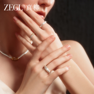 银色素圈三件套戒指女ins冷淡风高级感食指戒轻奢小众设计指环