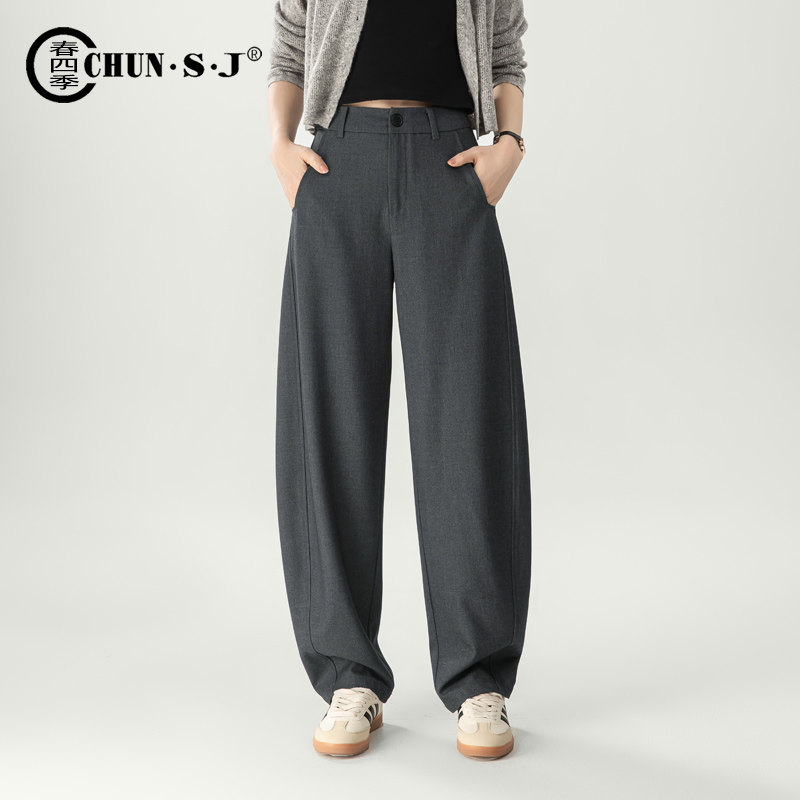 秋季 女2025新款 垂感女裤 休闲西裤 高级感灰色直筒西装 弯刀阔腿裤 裤