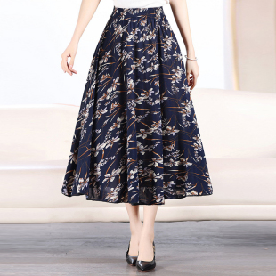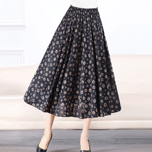 冰丝棉松紧腰半身长裙大摆复古碎花裙子 女装 2025夏季 简约穿搭新款