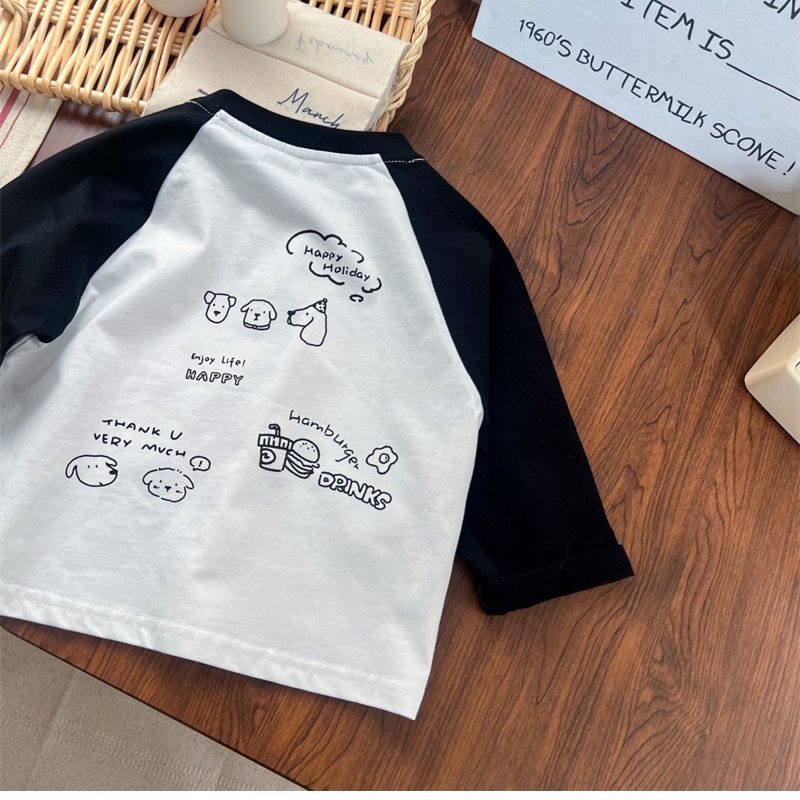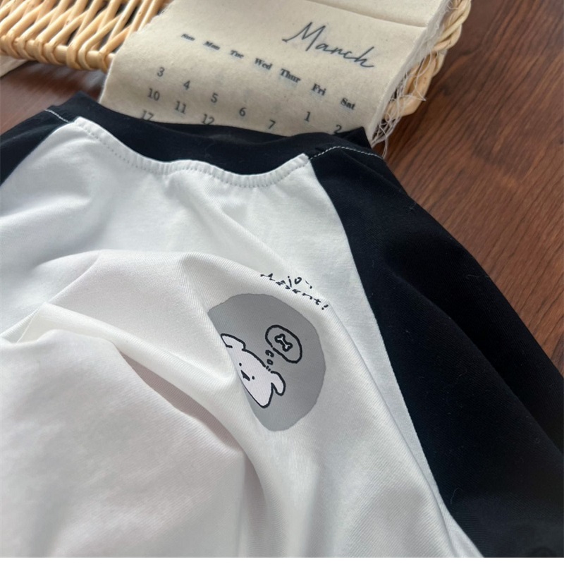 男女童时髦卡通百搭纯棉上衣 t恤春秋装 儿童新款 韩系洋气拼色长袖