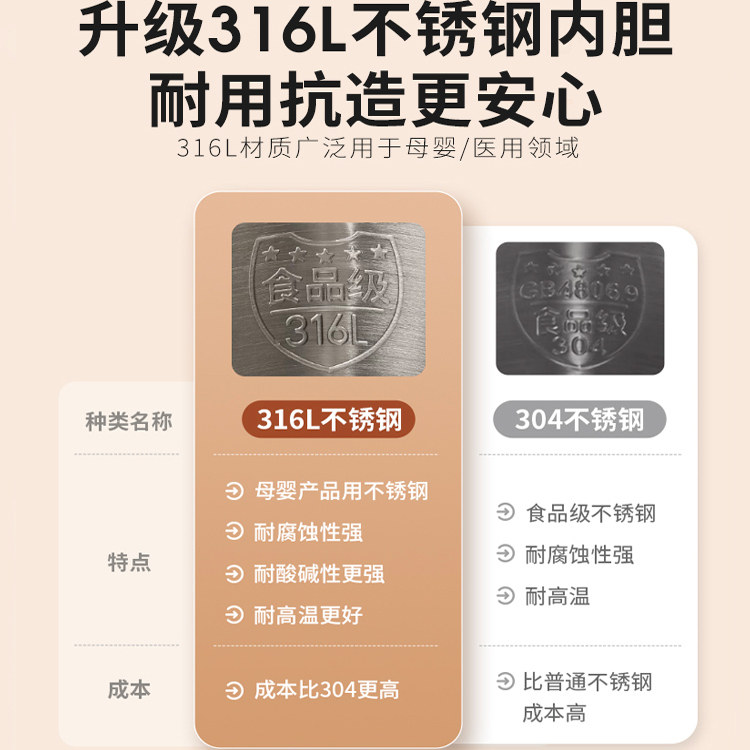 九阳电热水壶家用保温2L烧水壶自动断电开水煲316不锈钢电水壶