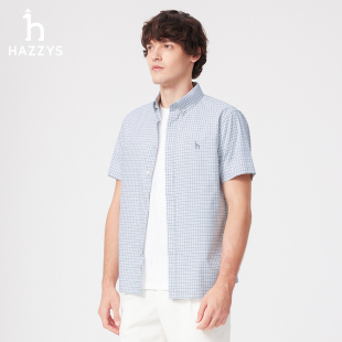 外套时尚 Hazzys哈吉斯夏季 衬衫 格纹短袖 潮流衬衣纯棉休闲上衣 男装