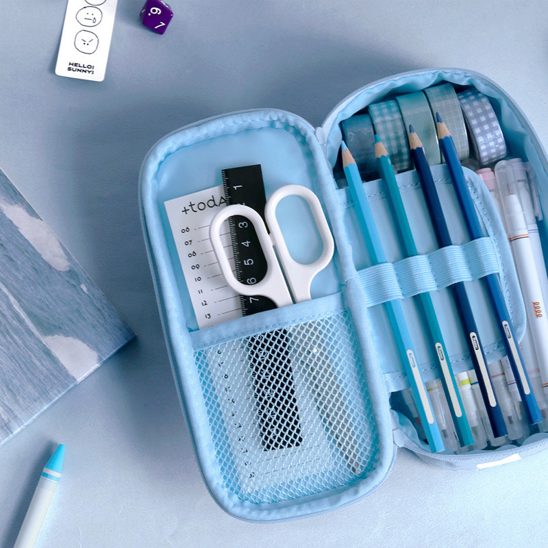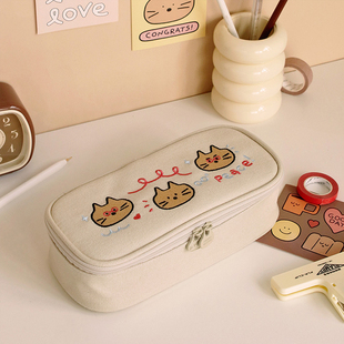 韩国ICONIC可爱插画刺绣猫咪立体大容量笔袋学生文具收纳袋铅笔盒
