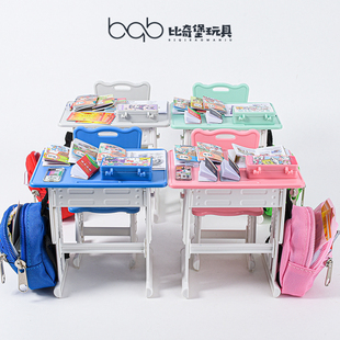 迷你学习课桌椅微缩仿真文具套装 铅笔盒小书包课本书本模型小玩具