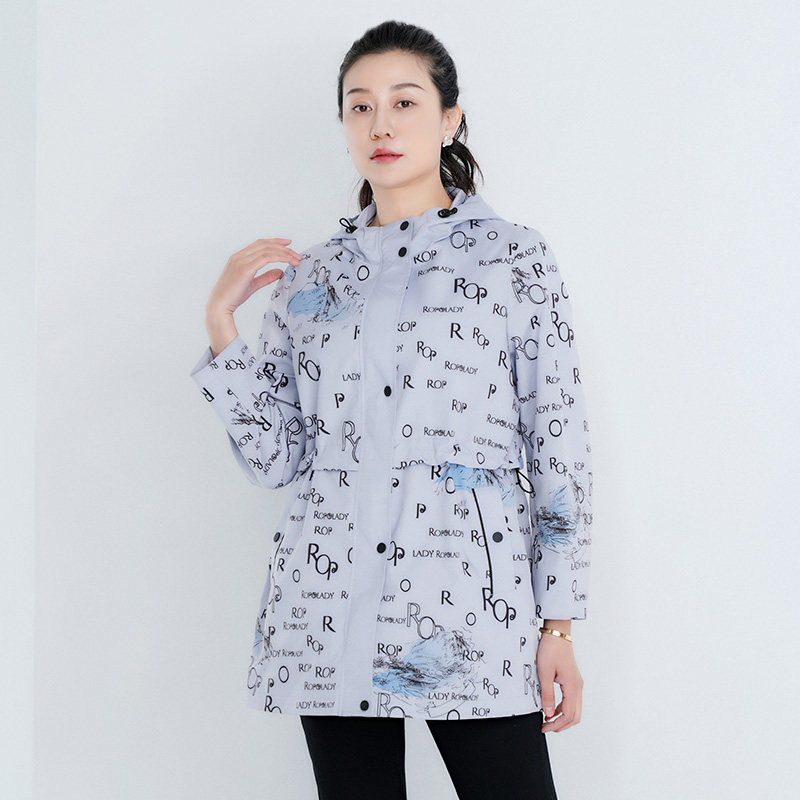 字母时尚 胖太太大码 新品 春季 连帽宽松休闲外套风衣325113710 女装