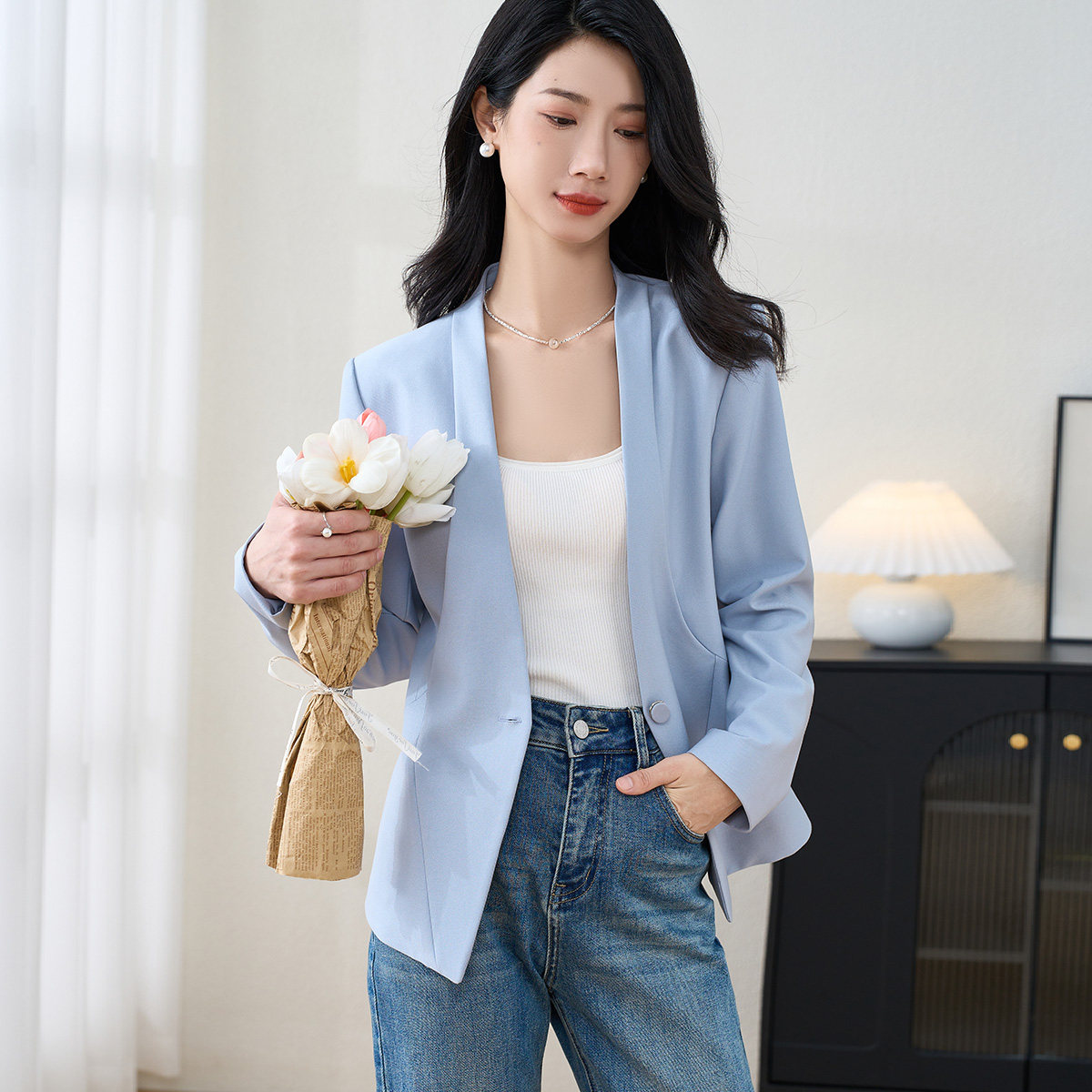 垂顺舒适显瘦正装 米思阳2025秋季 通勤质感西装 经典 外套女3480 新款
