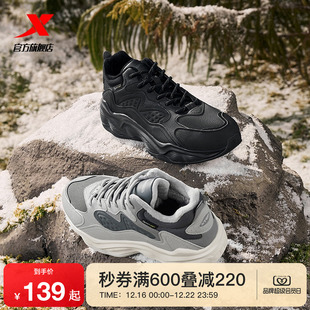 老爹鞋 特步闪电棉鞋 轻便户外黑色运动鞋 厚底加绒保暖休闲鞋 男冬季