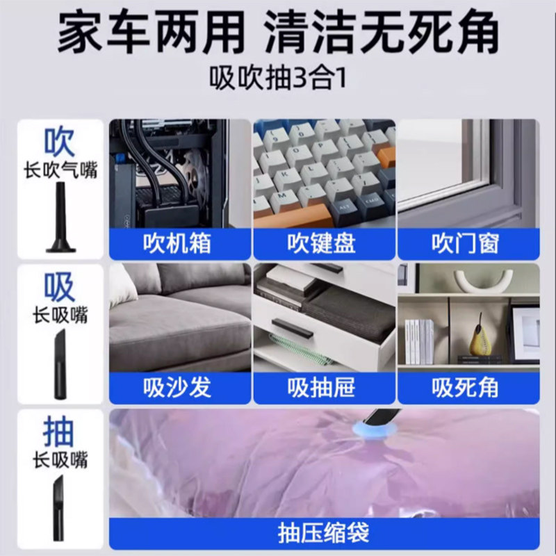 荣事达车载吸尘器小型便携式 汽车座椅零食灰尘毛发家用沙发除尘器