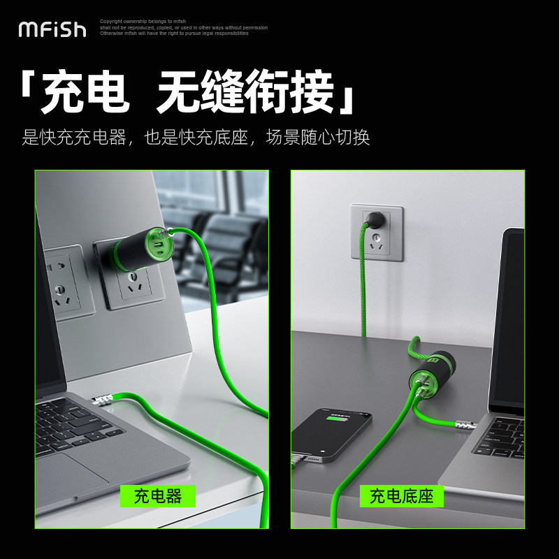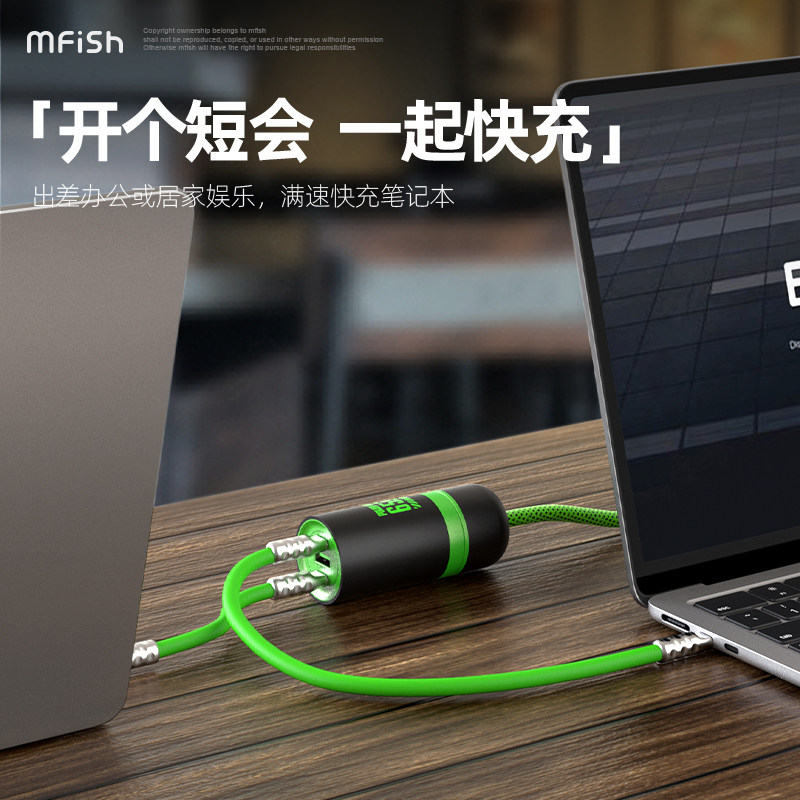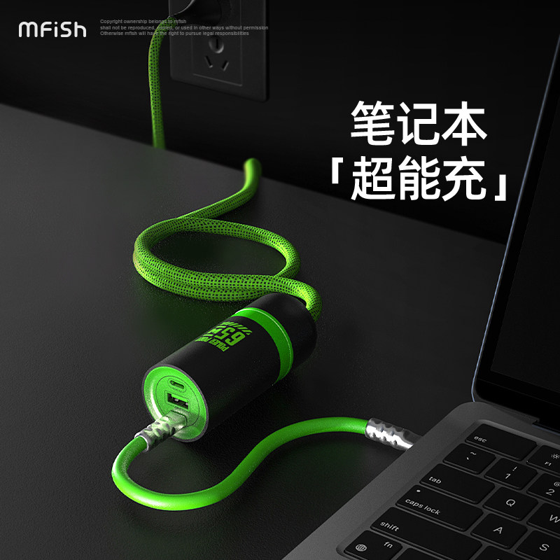黑鱼电力蘑菇二号充电器65W快充氮化镓多口手机笔记本USB适用苹果15华为macbook插头ipad电源