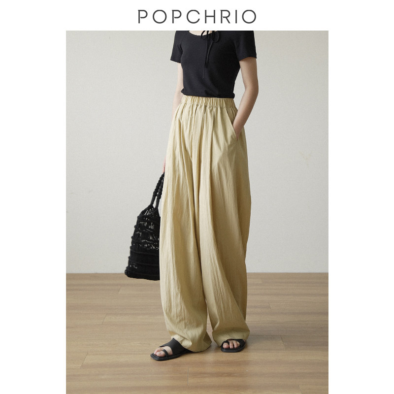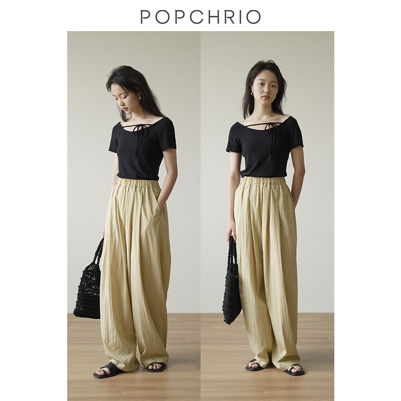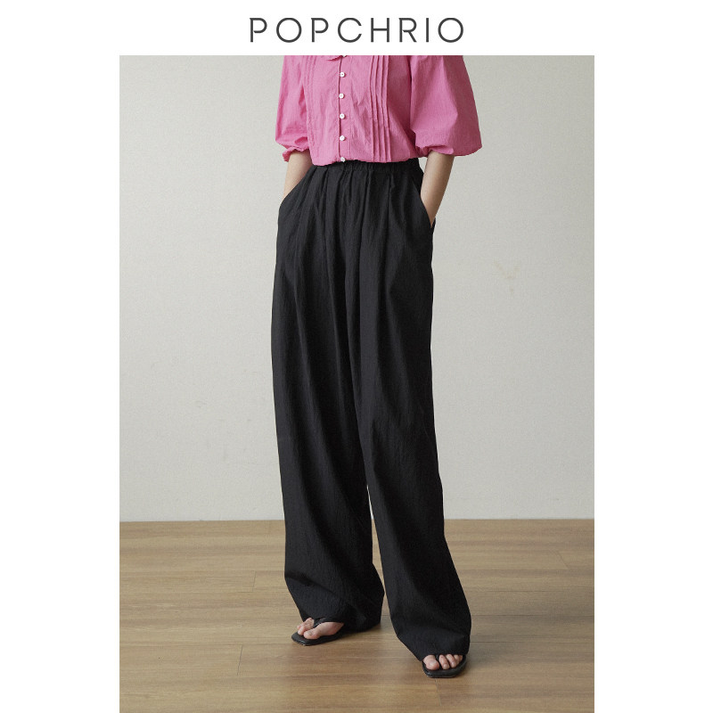 黑色宽松垂感松紧带拖地阔腿长裤 轻盈云感裤 子女春季 到手99元