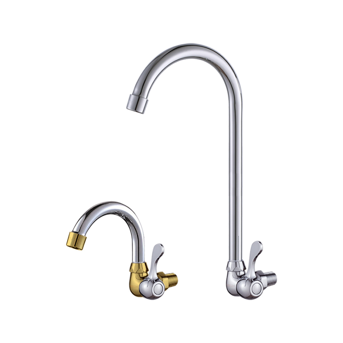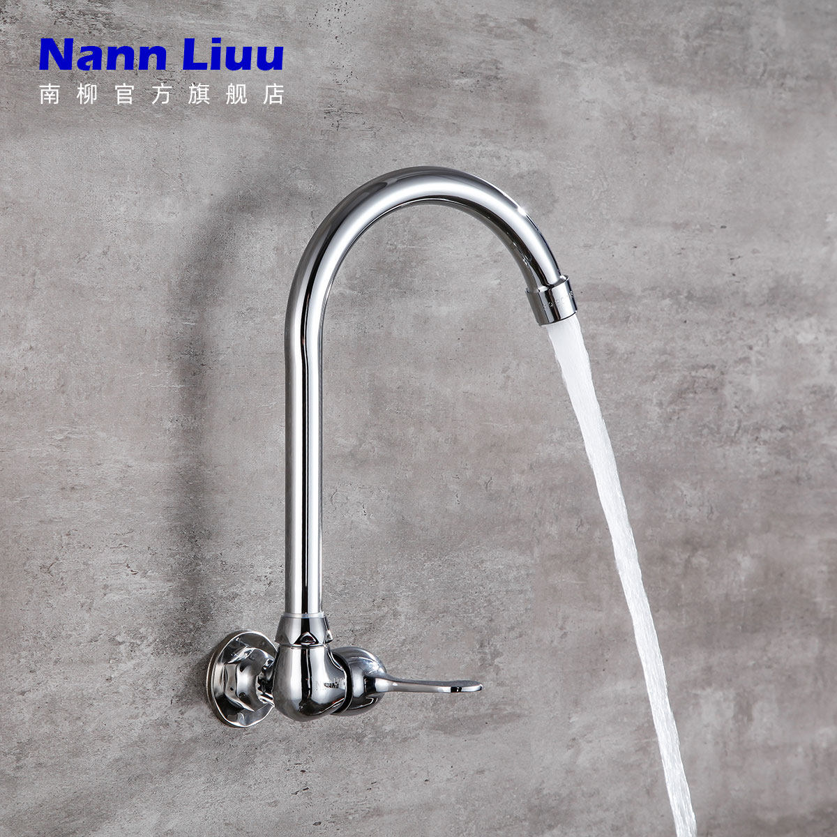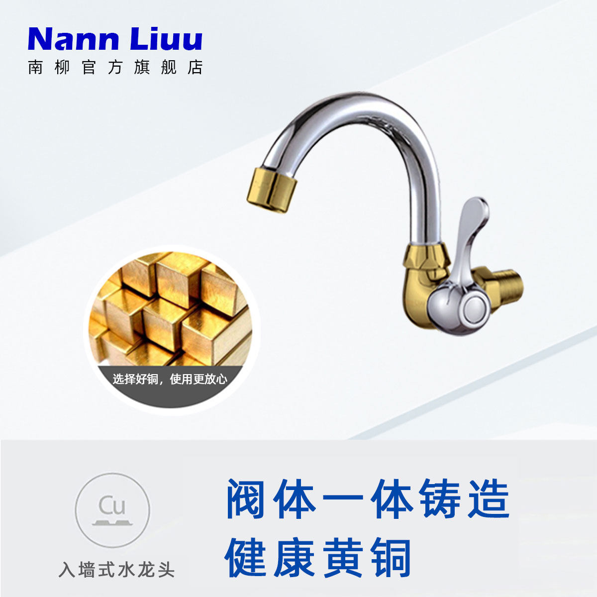 单冷入墙式 全铜水龙头家用洗衣池洗脸盆龙头厨房菜盆小弯摇摆龙头