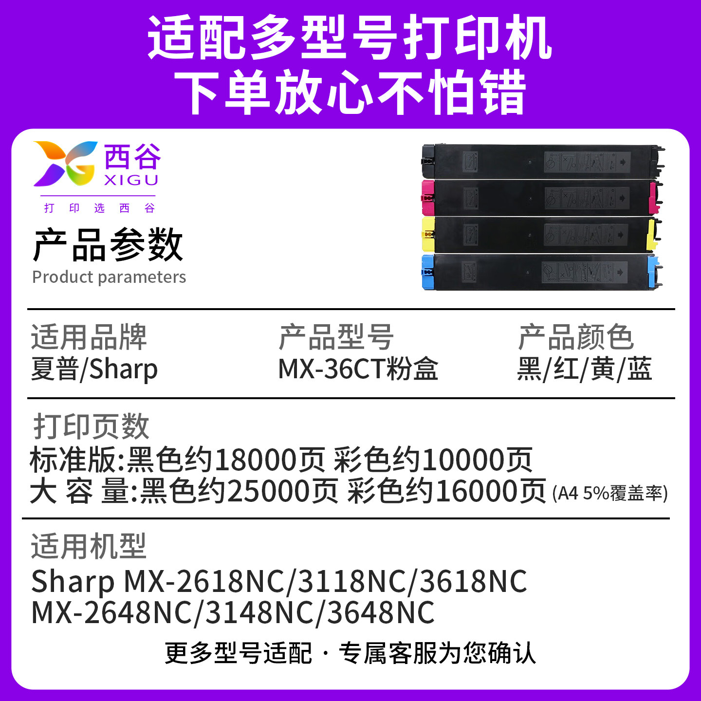 NC2648 3118 3148 品质效果MX2314 适用夏普2618NC粉盒MX 3618碳粉3648NC墨粉盒彩色复印机MX2640原装 36CT